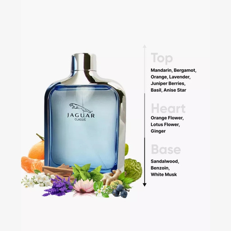 Jaguar Classic Eau de Toilette is crafted for the modern man who values style, confidence and timeless elegance. The fragrance opens with vibrant waves of mandarin, bergamot, orange, basil and star anise, lending bright, fresh energy at first spray.