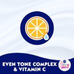 The unique Even Tone Complex targets uneven areas while Vitamin C helps brighten and revive skin tone.