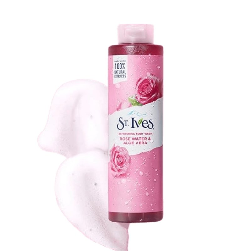 St. Ives Refreshing Body Wash Rose Water & Aloe Vera 450ml is a soothing daily cleanser that refreshes your skin while maintaining its natural moisture balance. Crafted with 100% natural extracts, this body wash combines the delicate essence of rose water with the calming properties of aloe vera for a revitalizing shower experience.