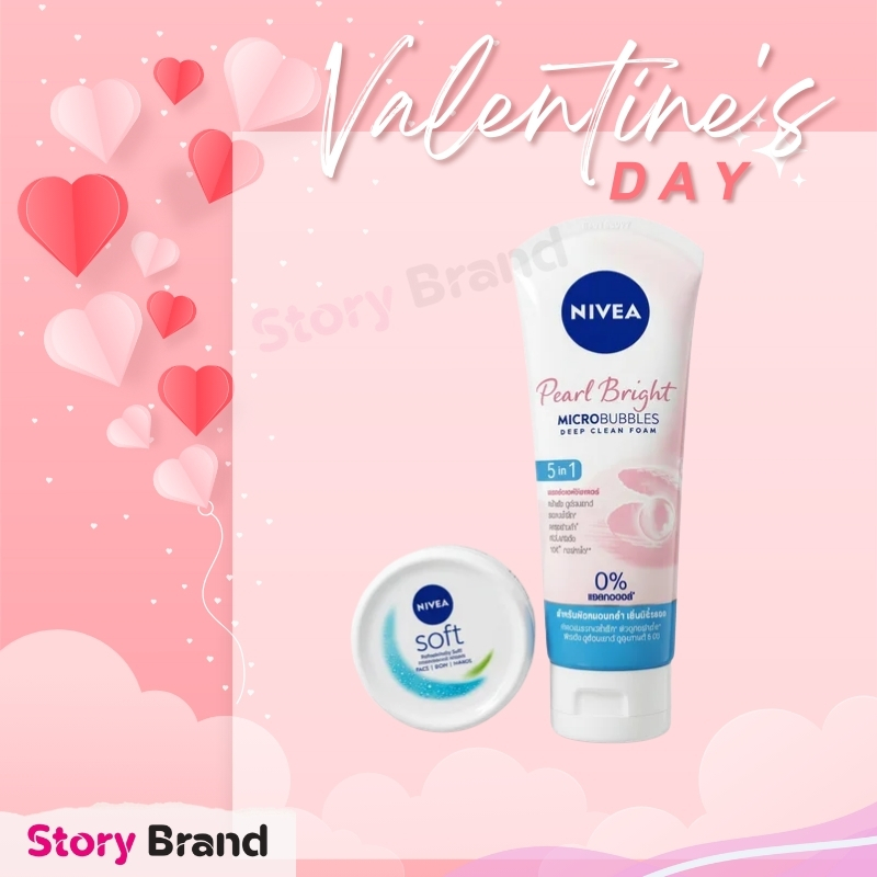 This Valentine Combo pairs NIVEA Soft Moisturizing Cream with NIVEA Pearl Bright Microbubbles 5‑in‑1 Deep Clean Foam. The set cleanses, brightens, and locks in lightweight hydration for soft, refreshed skin.
