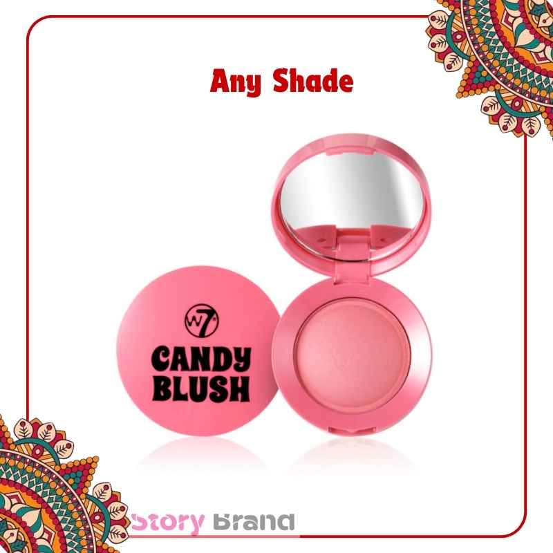 - The W7 Candy Blush is a dome powder blusher with a highly pigmented and long lasting formula.